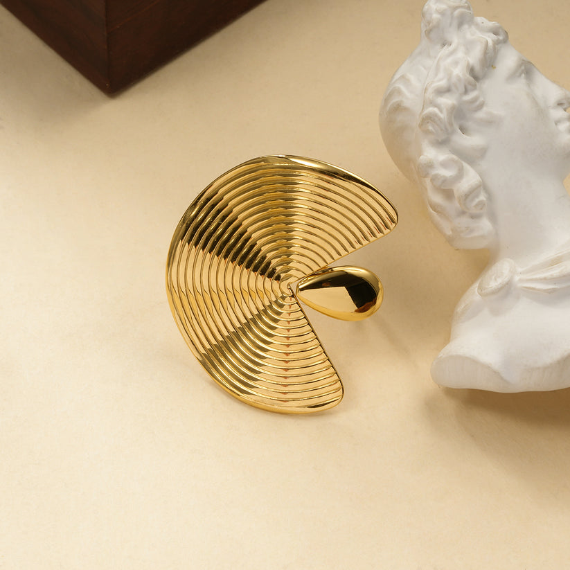 Bague dorée ouverte design ondulé et bombé finition miroir
