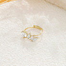 La bague Riley se distingue par sa finesse et son éclat délicat. Son anneau doré ajustable épouse parfaitement le doigt, tandis que ses six strass apportent une touche lumineuse et féminine. Un bijou élégant et discret, idéal pour sublimer une tenue ou compléter une accumulation sophistiquée.