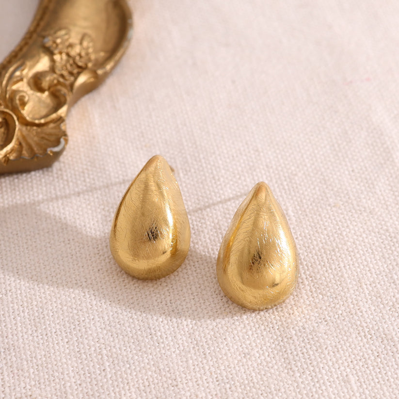Boucles d’oreilles goutte bombée dorées – finition brossée