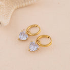 Boucles d'oreilles mini créoles dorées avec pendentifs cœur en strass
