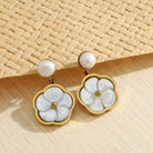 Boucles d'oreilles dorées pendantes fleur blanche . Tous nos produits sont fabriqués en acier inoxydable, un matériel qui résiste à l'eau et ne se rouille pas dans le temps. Ils sont garantis sans nickel, sans cadmium et sans sel de plomb.