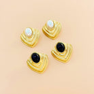 Ces boucles d’oreilles dorées en plaques losanges gravées sont sublimées par des pierres noires profondes. Leur design structuré et puissant apporte une allure résolument moderne et affirmée, idéale pour celles qui aiment les bijoux de caractère.