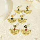 Ces boucles d’oreilles dorées se parent d’un pendentif éventail émaillé vert, apportant une touche végétale et lumineuse au bijou. Leur design raffiné et graphique évoque une élégance naturelle, parfaite pour sublimer vos tenues avec douceur et caractère.