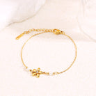 Ce bracelet à chaîne fine est orné d’un pendentif fleur strassé au centre, encadré par deux perles, pour un bijou délicat et raffiné. Idéal pour apporter une touche féminine et lumineuse à toutes vos tenues.