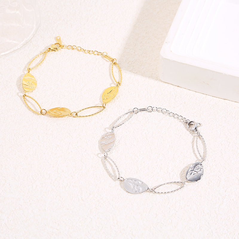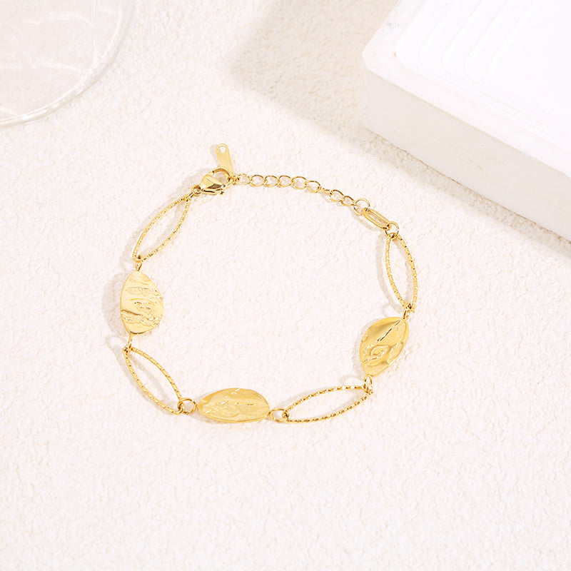 Ce bracelet chaîne fine dorée est sublimé par un contour ovale central strassé aux angles arrondis, pour un bijou raffiné et lumineux. Il apporte une touche chic et sophistiquée à toutes vos tenues.