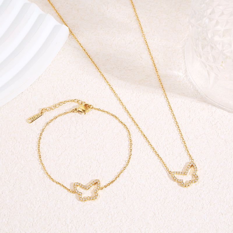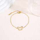 • Bracelet chaîne fine dorée avec contour papillon central strassé