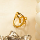 Bague Dorée Double Vague – Design Abstrait Ondulé
