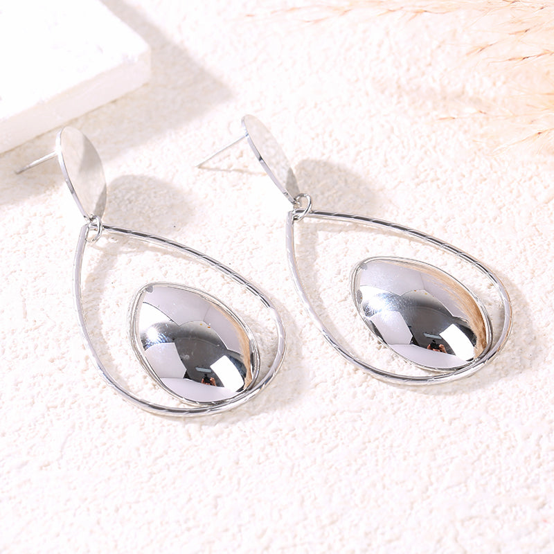 Ces boucles d'oreilles pendantes argentées en forme de goutte sont sublimées par un médaillon central bombé effet miroir, apportant lumière et sophistication à votre look.