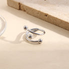 Cette bague argentée ajustable séduit par son design à double anneau orné de délicates billes sur l’avant. Son style structuré et contemporain apporte du relief et une touche d’originalité tout en restant élégante et facile à porter au quotidien.
