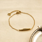 Ce bracelet chaîne fine dorée séduit par sa délicatesse et son pendentif en forme de goutte allongée, symbole de féminité et de pureté. Son design épuré en fait un bijou intemporel, facile à porter au quotidien comme pour des occasions plus habillées.