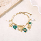 • Bracelet chaîne dorée avec charms cœurs et résine verte