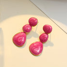 Ces boucles d’oreilles dorées pendantes sont ornées d’émail rose, apportant douceur et féminité à votre look. Leur design élégant et raffiné illumine le visage tout en offrant un style chic et moderne, idéal pour toutes les occasions.