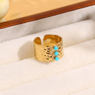 Bague dorée épaisse martelée avec pierre turquoise. Tous nos produits sont fabriqués en acier inoxydable, un matériel qui résiste à l'eau et au temps.