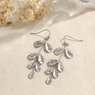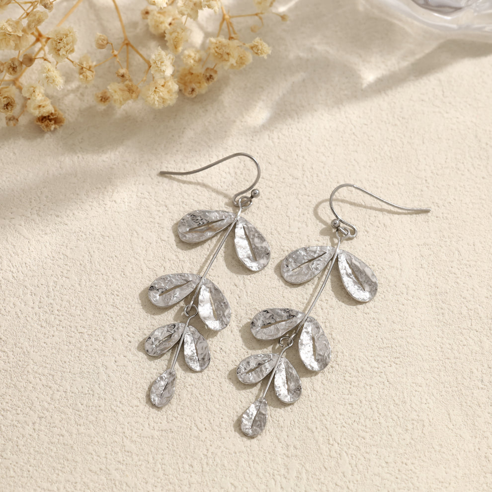 Boucles d’oreilles pendantes argentées – Branche et feuilles brossées