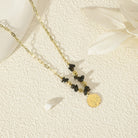 Collier Chaîne Dorée Pierre Agathe Noire & Plaque Martelée