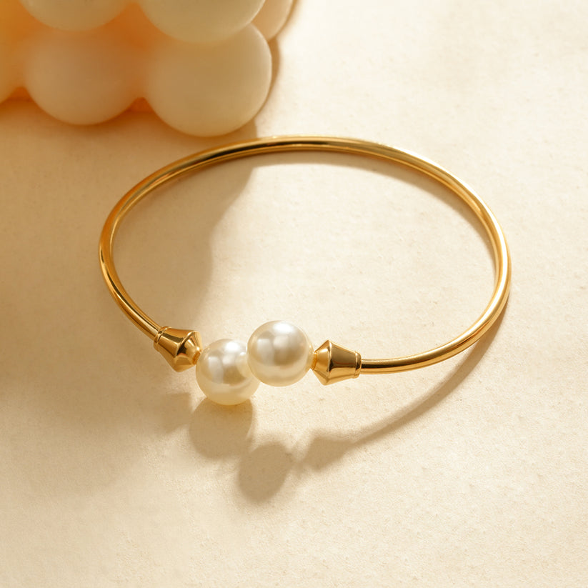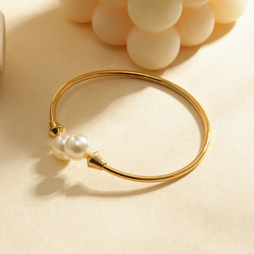 Bracelet manchette doré ajustable avec détails perlés.