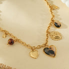 Collier chaîne dorée pendentifs cœurs résine léopard