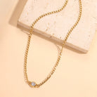 Collier chaîne à maillons dorés orné d’un pendentif serti d’une pierre transparente, pour une allure élégante et intemporelle. Conçu en acier inoxydable, il résiste à l’eau et au temps tout en conservant son éclat au fil des ports.