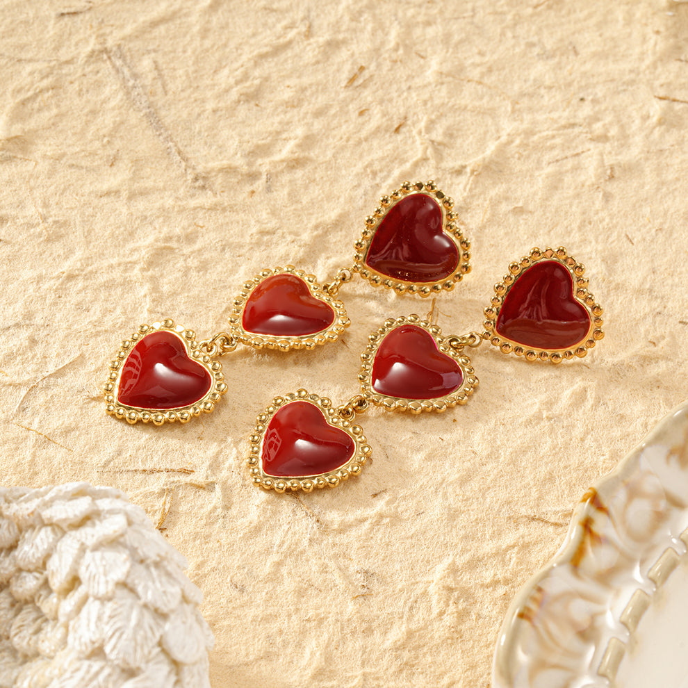 Boucles d’Oreilles Triples Cœurs Pendants Rouge ❤️