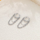 Boucles d’oreilles argentées créoles double chaîne pendante