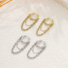 Boucles d’oreilles argentées modernes composées d’une créole discrète et de deux chaînes pendantes élégantes. Un modèle contemporain qui apporte mouvement, style et lumière à chaque tenue.