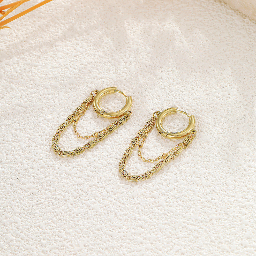 Boucles d’oreilles dorées – Créoles à double chaîne pendante