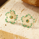 Ces boucles d’oreilles dorées en forme de fleur ajourée ornées de perles vert émeraude séduisent par leur design raffiné et leur touche végétale élégante. Leur format équilibré apporte une note lumineuse et féminine, parfaite pour sublimer le visage au quotidien comme lors d’occasions spéciales.